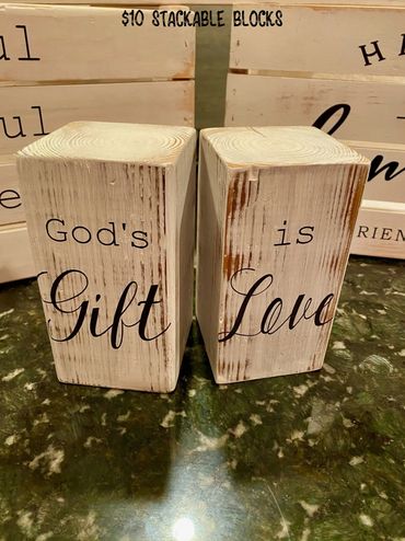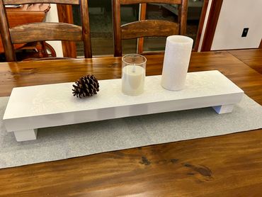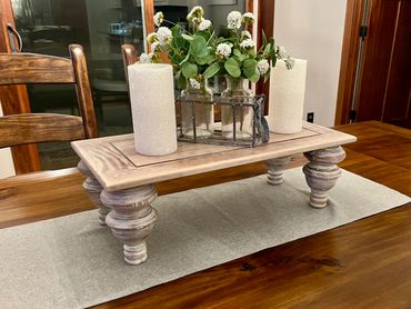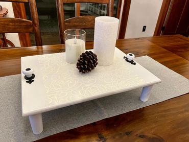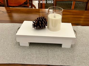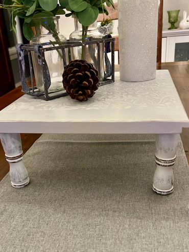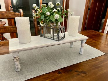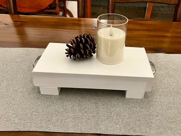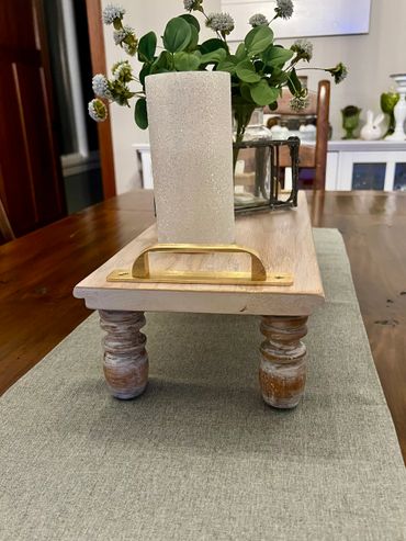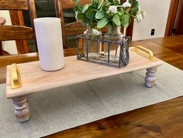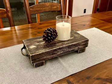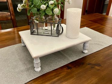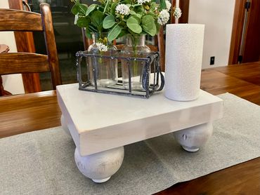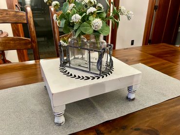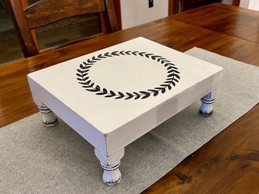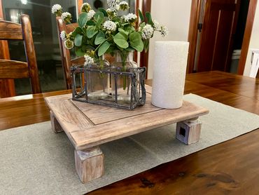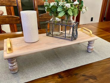 Vintage junk, old boards and scraps are cleaned up, trimmed, stained and hand crafted into beautiful wood risers, serving trays and other home decor items. Some are embellished with stencils or hand-painted designs. All are created with love and look amazing on your dining room table or kitchen island.